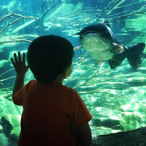 The Living Stream exhibit is an educational tool for both adults and children. The Stream itself is an ecosystem comprised of a mosaic of habitats. It supports biodiverse organisms and demonstrates the importance of maintaining good water quality. Here, visitors may discover frogs, toads, crayfish, bluegill, catfish, and many more Kentucky native species.