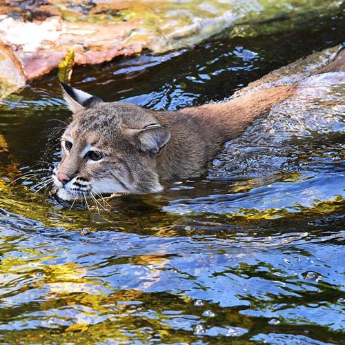 Bobcats are highly adaptive carnivores. Despite rare human sightings, these elusive creatures are North America’s most common wildcat. Salato is home to two bobcats. To mimic their habitat in the bluegrass, we installed a running stream system through the center of their exhibit. Surrounded by native grasses and tunnels, the addition provides fresh water and a thick underbrush for both cats to utilize.